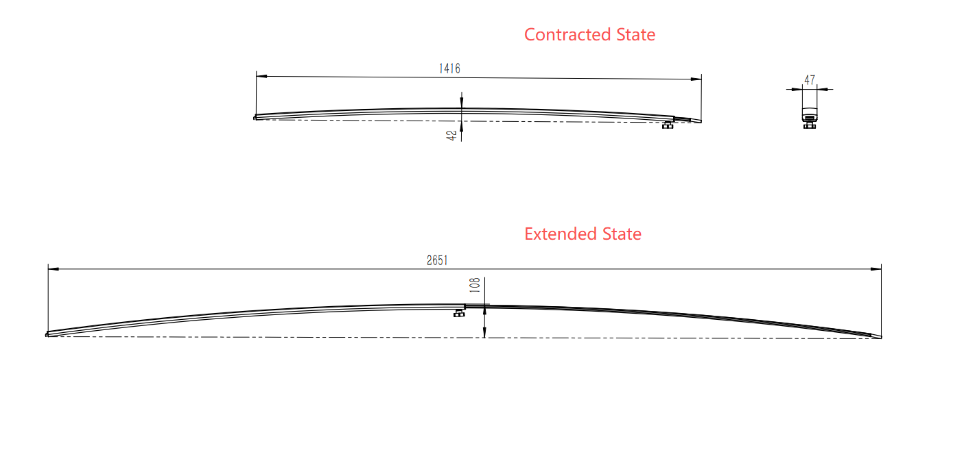 • Flexible Sizing: Collapses to 1.416m (L) x 0.042m (H) and extends to 2.651m (L) x 0.108m (H) for adaptable coverage.