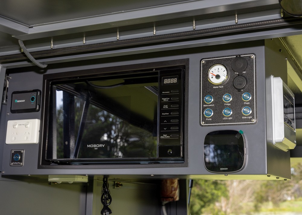 Designed to keep your site powered for days at a time. Our innovative EMS features everything you need to charge and operate all your equipment when you need it. It includes 2 x 100Ah Lipo batteries, 200watts of solar panels on a slide runners mounted under the roof rack, Renogy smart 3000W inverter/ 50Ah AC charge combination, Renogy 50Ah DCDC Charger, Renogy Core 1 touch screen Bluetooth interface & mobile App & 240V external mains plug-in and more!